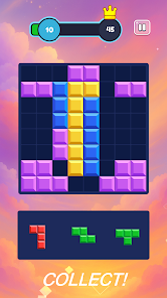 Royal Block: Color Blast Jam é um jogo de quebra-cabeça que combina mecânicas clássicas de Tetris com um toque de cores vibrantes. O jogo oferece uma experiência de relaxamento enquanto desafia os jogadores a resolverem puzzles lógicos. Os usuários podem arrastar e soltar blocos coloridos na grade, completando linhas inteiras para eliminá-los e aumentar a pontuação. Com um modo de aventura que progressivamente apresenta desafios mais difíceis, este jogo é ideal tanto para quem busca um treino mental quanto para quem quer uma pausa relaxante.